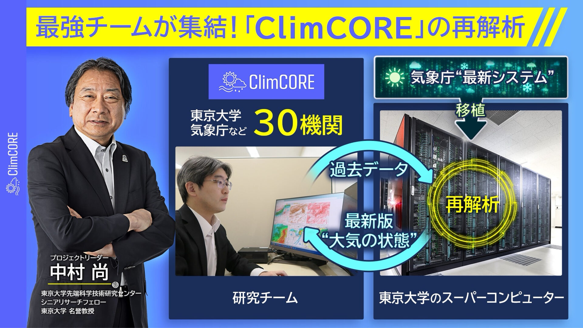 プロジェクトの名前は、「ClimCORE」(クライムコア)。東京大学や気象庁を始め、日本中の“天気のプロ”が参加しています。